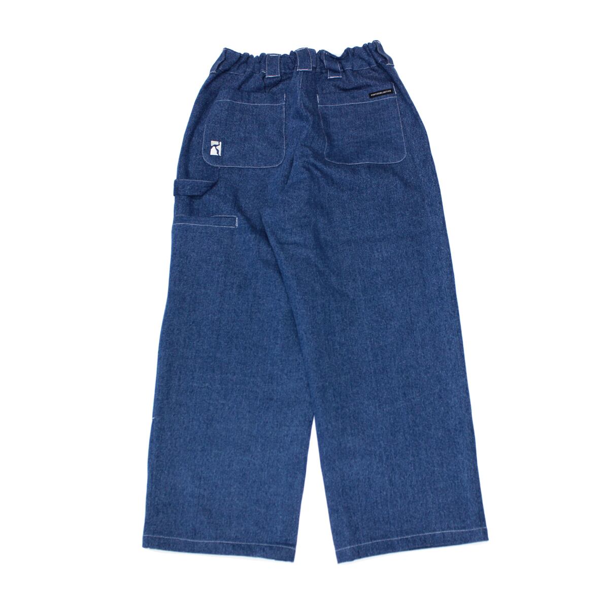 ウエストにゴムが入ったデニムペインターパンツ。